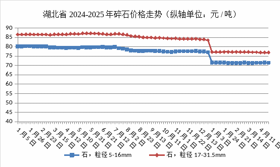 监测数据显示:4月份,具体价钱走势环境如下图:监测数据显示:4月份,当前湖北省建材市场仍处于供需调整期,市场需求无望边际改善,碎石(粒径5-16mm)、碎石(粒径17-31.5mm)全省均价别离为:71.46元/吨、76.88/吨。