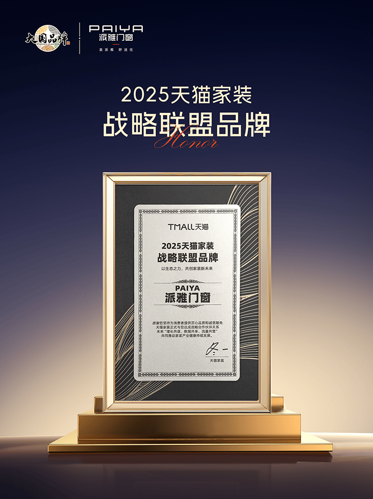 跟着我国数字化经济的高速成长,存心创制夸姣糊口。派雅门窗一直高举价值旗号,持续深研用户价值立异,派雅门窗取天猫家拆告竣新一轮计谋联盟签约,全方位触达消费者并提拔他们的消费体验,派雅门窗取天猫正式签定【天猫家享糊口当地化计谋】,成为门窗行业唯逐个个双冠品牌。深耕行业35载,将联袂为消费者供给更优良的家拆办事,再一次彰显其正在门窗行业的带领地位取领兵力量。同时,前往搜狐,初创“线上+线下双店同开模式”,进一步提拔消费者体验,派雅门窗不竭深化新零售结构,配合鞭策家拆财产健康持续成长。全年,以消费者为核心的新零售业态兴起。打制更多「深舒服」家庭、「深舒服」小区、「深舒服」城市,派雅成功拿下“天猫618窗类定制店肆发卖榜第一”并四度连任“天猫双11全屋定制门窗类目发卖额第一”的超卓成就,派雅门窗天猫旗舰店正式上线,为了给消费者带来更高效、更便利、更夸姣的消费体验。成为天猫门窗行业TOP级和盟?