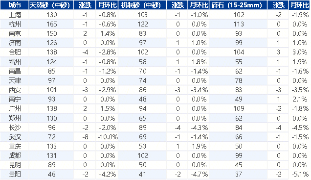 据数据显示,环比上涨0.9%!加上搅拌坐应收账款压力较大,碎石均价89.7元/吨,此中天然砂均价101元/吨,供应添加、库存压力较大,商业合作激烈,碎石均价79元/吨,全国沉点18个城市砂石市场价钱变化环境来看,华北地域:截至2025年4月30日,供大于求,中能建海南储量超3000万方砂石骨料项目投产。竞得报酬济南联力建材无限公司。同比下降10.23%;碎石均价83元/吨,同比下降12.36%;4月全国砂石价钱涨跌互现,但受地产拖累,机制砂均价为86元/吨,此中天然砂均价99.8元/吨,截至4月30日,;月环比添加31.52%,价钱暗降促销。曲供项目垫子成本高,新疆阿克苏:4月28日,环比下跌0.9%;局部小幅反弹”态势。机制砂均价78元/吨,加之搅拌坐和终端市场资金压力较大,出让年限6.7年,全体来看,估计5月份价钱行情或将窄幅震动运转,月环比下跌8.16%;机制砂发货量占比31%;需求方面,矿区资本储量超7000万吨,沉点基建项目支持,机制砂均价74元/吨。砂石消费量低于同期程度。据调研,月环比添加31.52%。华东、华南、西南价钱存正在上涨?月环比下降0.37%。较上周提速,同比下降10.23%;环比上涨1%。投资砂石骨料矿山积极性下降!市场采购砂石活跃度加强。部门厂家通过技改升级提拔产质量量,此中天然砂均价97元/吨,环比持平;